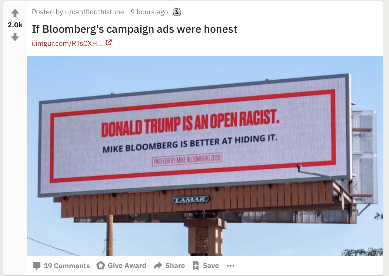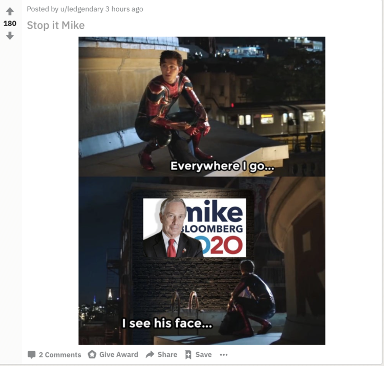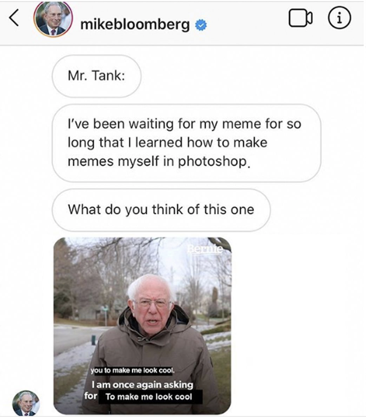 All of these organically produced memes are being provided free of charge, but for Meme 2020, sponsored meme posts are the go-to-strategy and have already been utilized by former democratic candidate Mike Bloomberg.